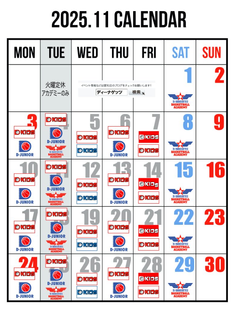 愛知店(一宮)「2025年11月 営業カレンダー」