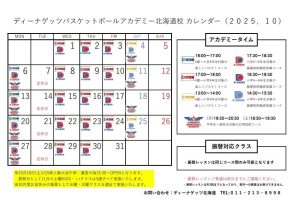 2025年10月のアカデミー・フリーコートカレンダーを掲載させていただきます。