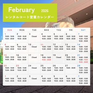 トレッサ横浜「26年2月度 レンタルコート営業カレンダー」